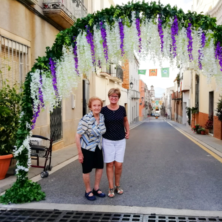 Les veïnes del Carrer Major van prepara en molta il·lusió un marc de flors, que ha omplert de color el nou espai per fer els actes al carrer Pompeu Fabra.